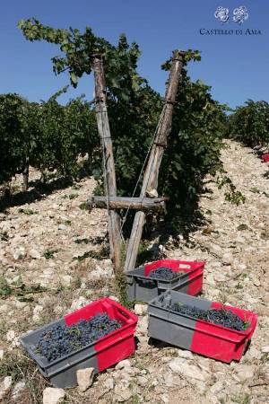 star (2014-03-07) O posiadłości pisał także Tomek Prange-Barczyński. Twarze Chianti: Castello di Ama - ziemia przede wszystkim.Otwarta lira w winnicy Castello di Ama | fot. Carlo Borlenghi, Castello di Ama W 1982 r. późniejszy włoski Winogrodnik Roku (2003) Marco Pallanti rozpoczął szeroko zakrojony proces restrukturyzacji winnic Castello di Ama w pobliżu Gaiole. W ciągu pięciu lat przeszczepiono 50 tys. roślin tak, by w najlepiej predestynowanych do tego parcelach znalazły się najbardziej wartościowe krzewy sangiovese. Równocześnie Pallanti zaczął eksperymentować z merlotem, chardonnay i pinot noir. Wtedy także zmieniono system prowadzenia winnej latorośli wprowadzając tzw. otwartą lirę. Wszystko to miało miejsce w dziesięć lat po założeniu Castello di Ama przez cztery rzymskie rodziny (1972). Dziś posiadłość liczy 250 ha, z czego 90 poświęconych jest winorośli, a kolejne 40 uprawie drzew oliwnych. Średnia wysokość upraw to 480 m n.p.m. wino14940#49814